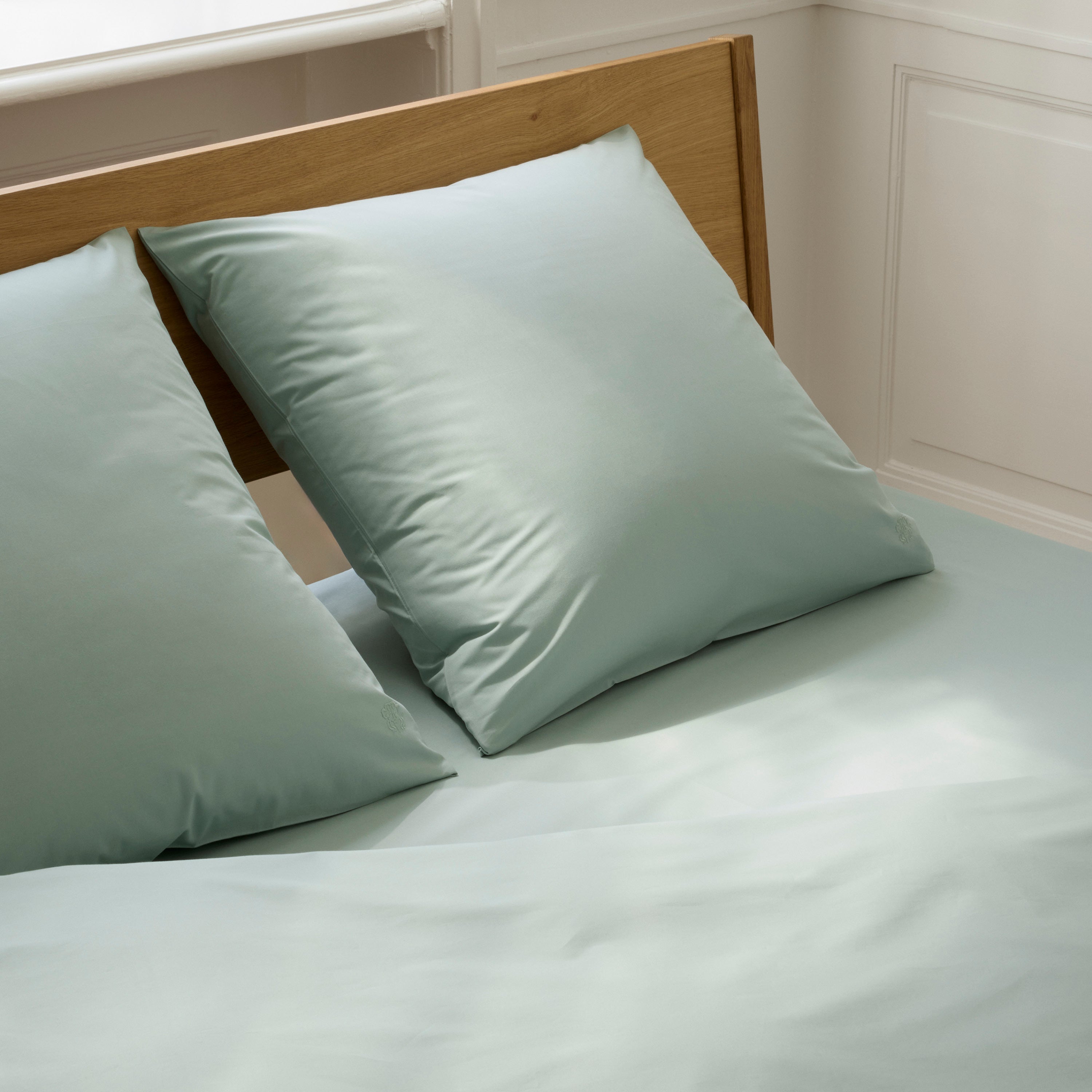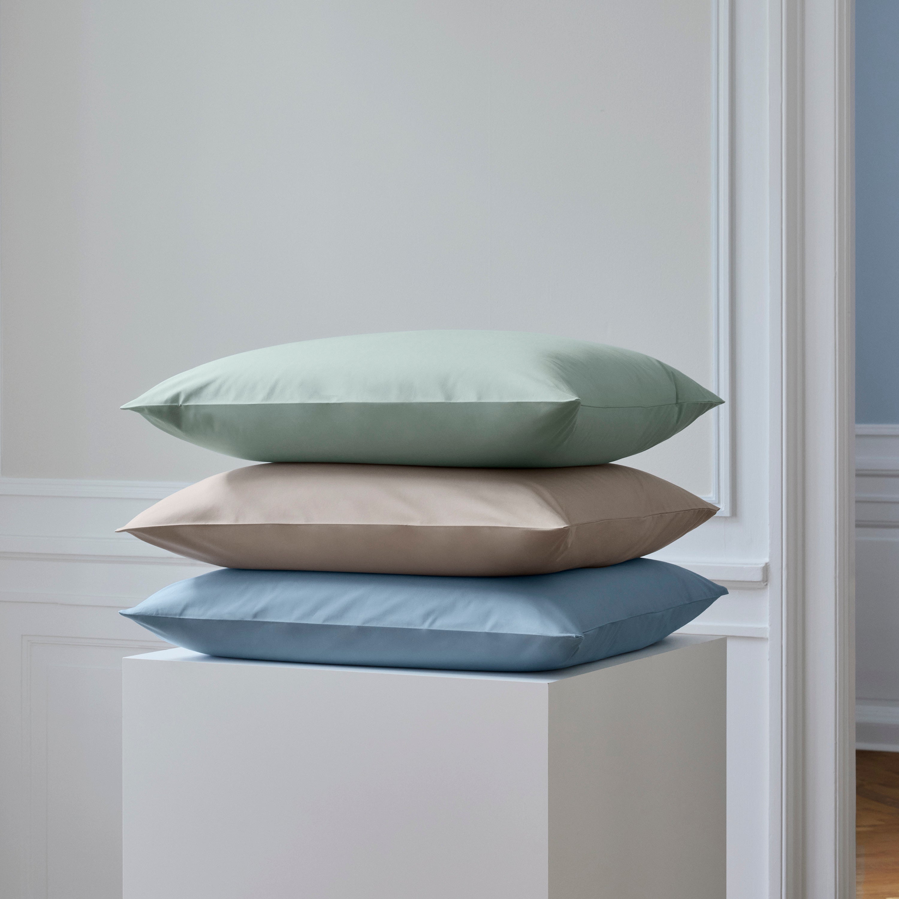 Das Supima Percale-Sortiment umfasst alles von Kopfteilen und Kissen bis hin zu Bettbezug und Laken in Farben wie Hellgrau, Hellgrün, kühlen Blautönen und warmen Erdtönen. Die langen Fasern der Baumwolle verleihen der Bettwäsche einen besonders schönen und sehr gleichmäßigen Farbton.