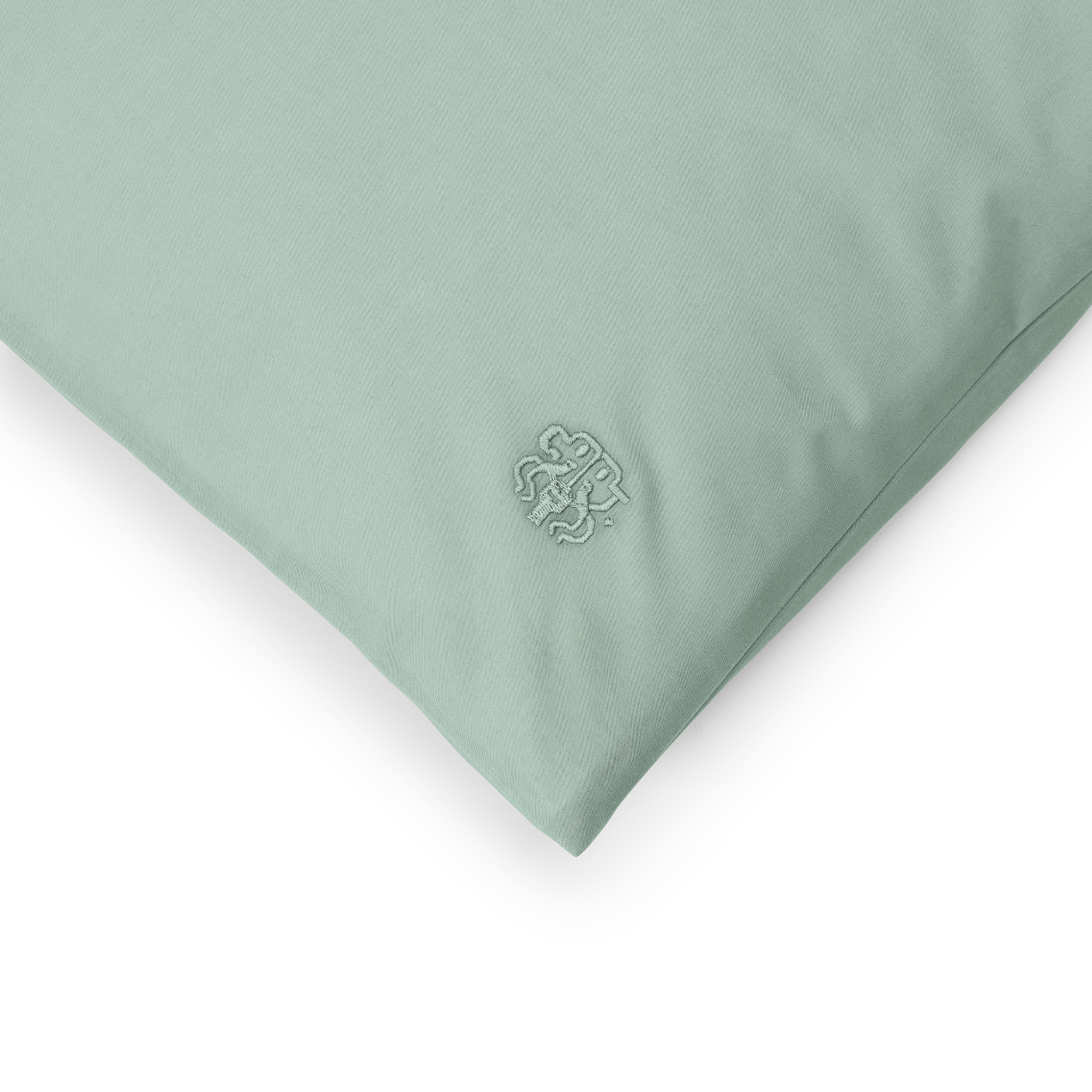 Der Kopfkissenbezug besitzt einen Hotelverschluss und trägt als dezente Stickerei das ikonische Logo von Georg Jensen Damask. Sage Green ist ein Grünton mit dezenten blau-grauen Untertönen.