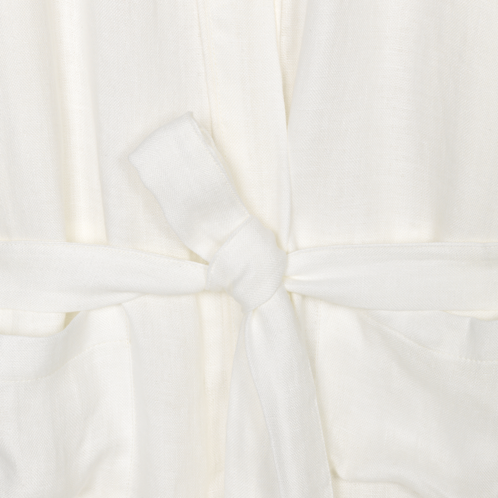 Die weiße Farbe macht den Linen Kimono zu einem schlichten Klassiker. In Weiß erhält der Kimono eine besonders leichte und hochwertige Optik, die zu jeder Jahreszeit und jeder Saison passt.