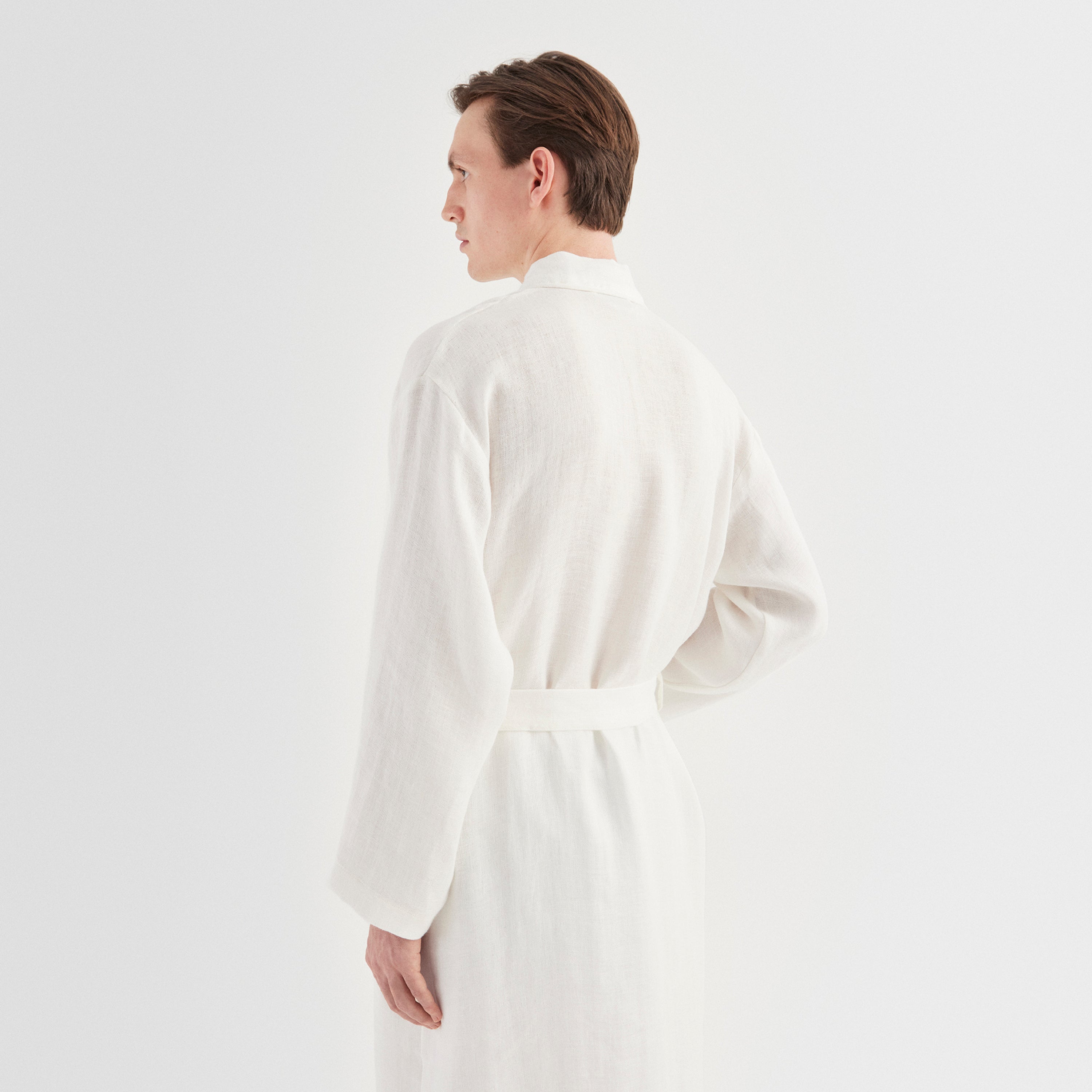 Der Linen Kimono ist zu 100 Prozent aus Leinen gewebt und beim Design stehen Funktionalität, Qualität und Ästhetik im Mittelpunkt. Der klassische Schnitt und die schwere Leinenqualität machen diesen Kimono zu einem absoluten Favoriten nach dem Duschen, vor dem Schlafengehen oder bei einem Ausflug an den Strand.
