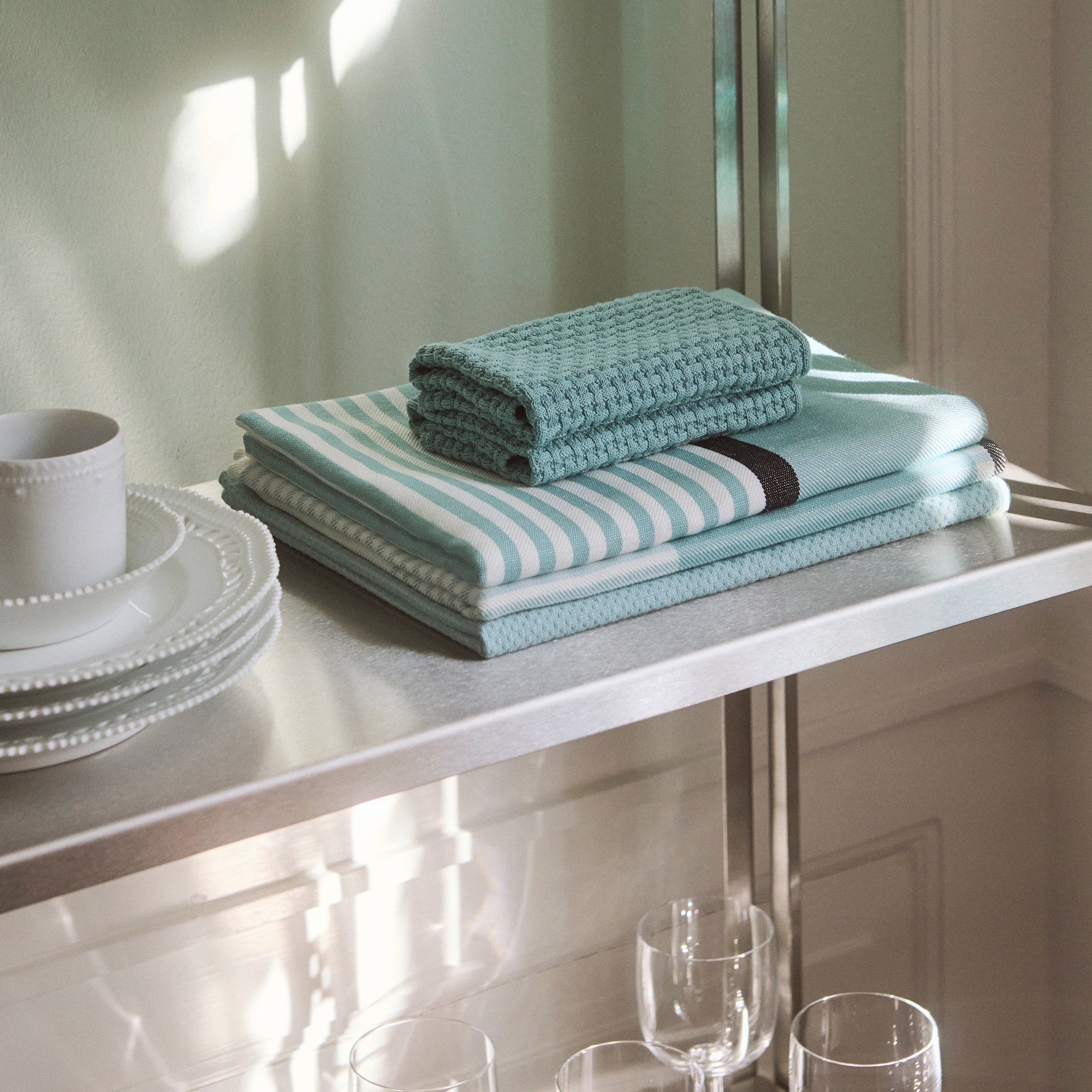 Bei Nors handelt es sich um einen weichen Spüllappen aus 100% Baumwolle. Dieser Spüllappen ist mit einem Waffelmuster gestrickt, das kleine Taschen für das Wasser bildet und eine perfekte Trocknungsleistung bietet. Dieser Spüllappen lässt sich leicht auswringen und hinterlässt keine Streifen auf der abgewischten Oberfläche.