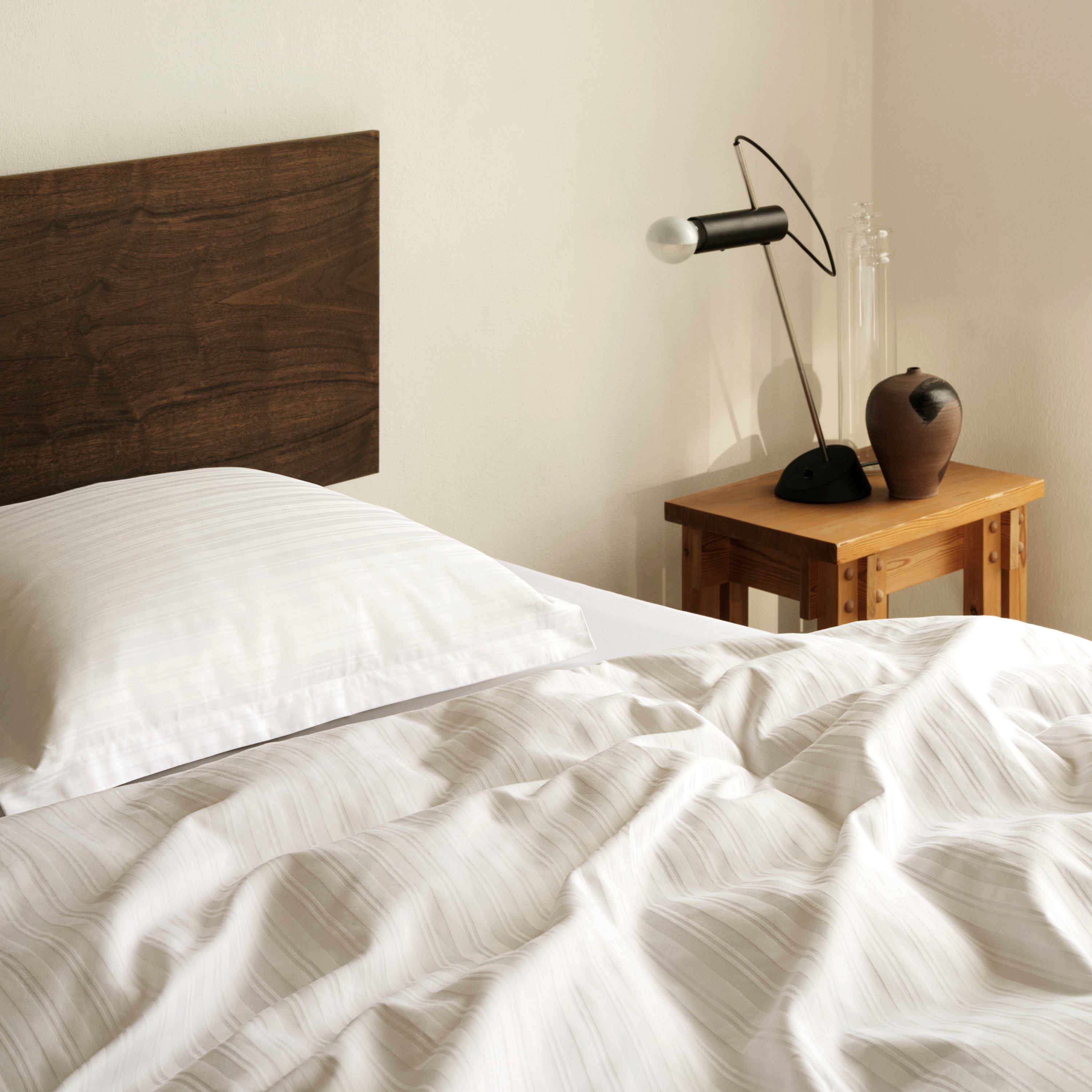 Damast-Kopfkissenbezug mit klassischem Streifenmuster. Dieser Kissenbezug ist mit einem Hotelverschluss ausgestattet.