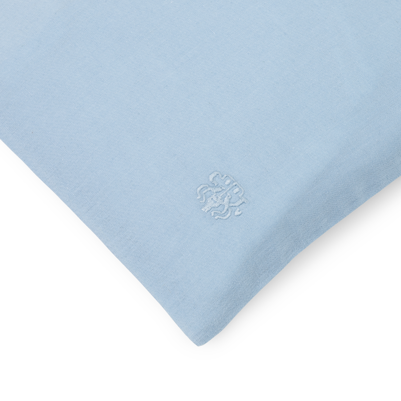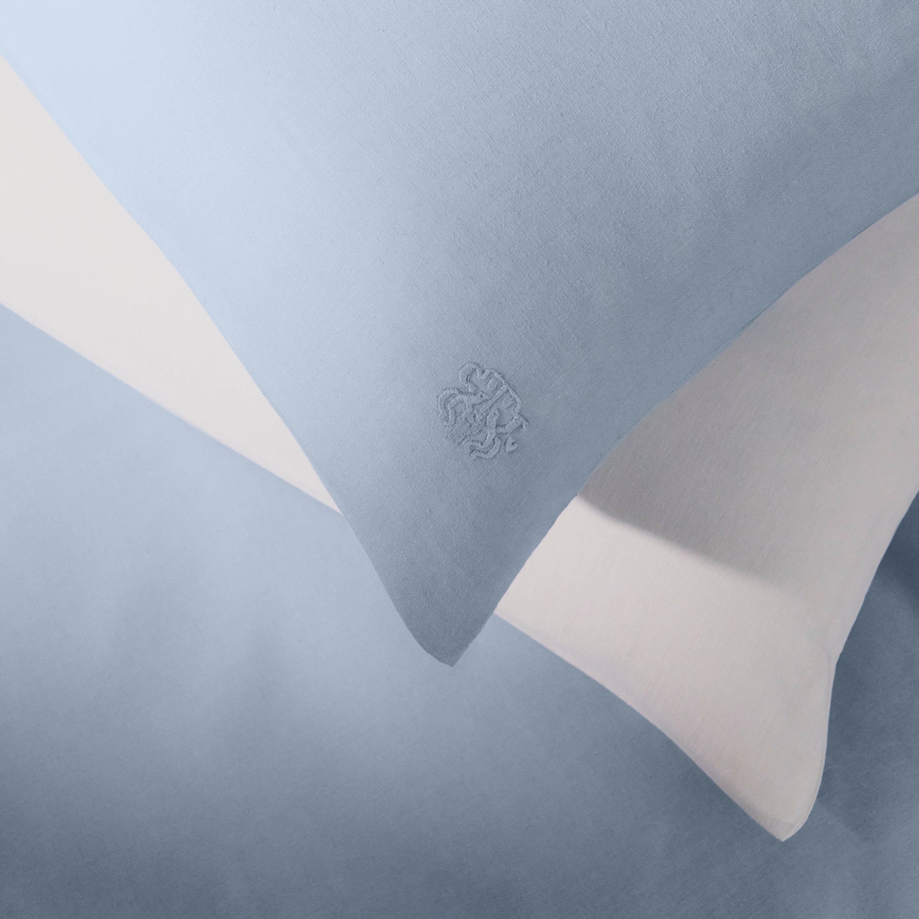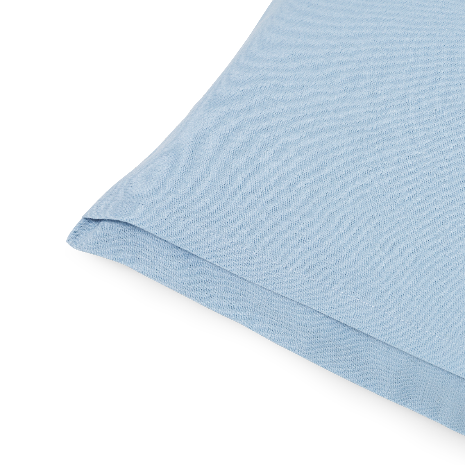 Die Even-Bettwäsche ist in Leinen und Baumwolle gewebt, um die besonderen Eigenschaften beider Materialien zu vereinen. Die natürliche Textur des Leinens kombiniert mit der Weichheit und Formstabilität der Baumwolle. Zusammen ergibt dies eine schöne, matte und weiche Oberfläche – sowie eine atmungsaktive und langlebige Bettwäsche. Die Farbe Blue Haze ist ein heller, pudriger Blauton.