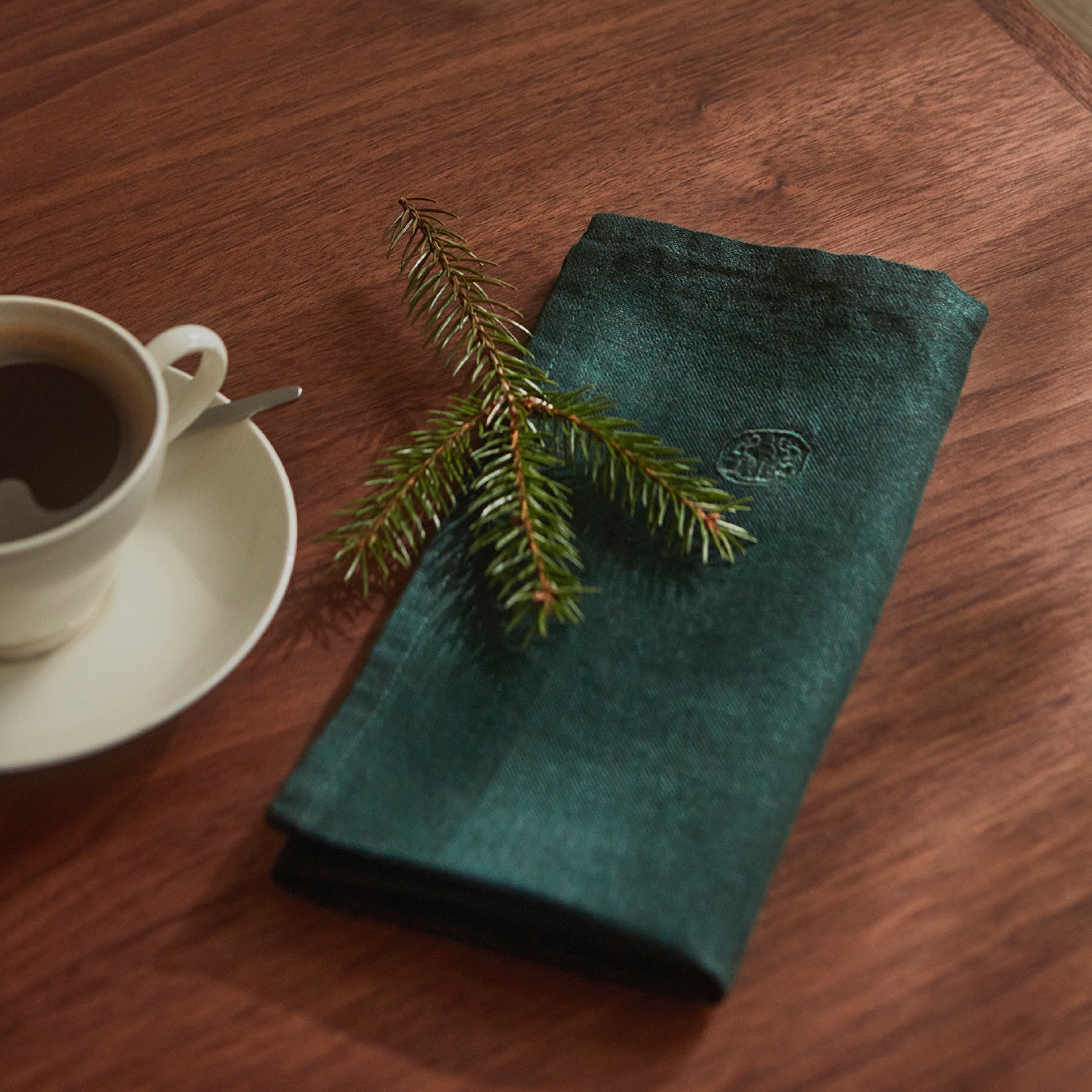 Mit ihrem schlichten Design und dem tiefen Dunkelgrün stellt diese Leinenserviette mit dem aufgestickten Logo eine schöne Ergänzung für das Tischgedeck dar. Die grüne Farbe schafft diese besondere Weihnachtsatmosphäre – wie man sie aus alten Zeiten kennt.