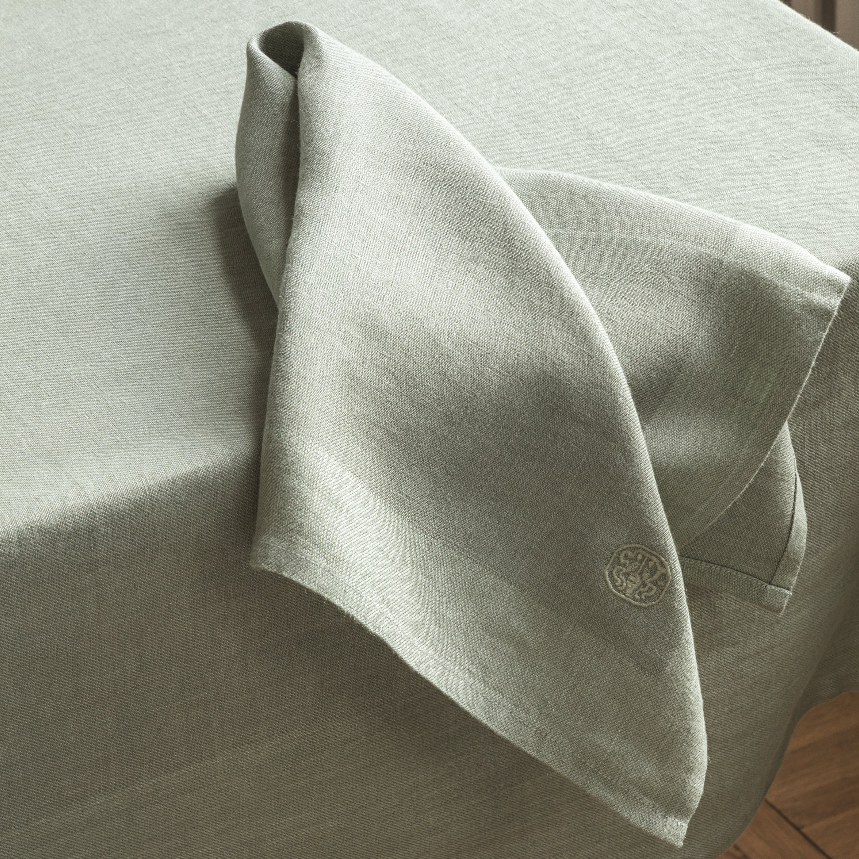 Mit ihrem schlichten Design und der pudrig grünen Farbe stellt diese Leinenserviette eine schöne Ergänzung zum Tischgedeck dar. Sie sieht sowohl zu einem klassischen Tischgedeck als auch in Verbindung mit einem informelleren Anlass schön aus – zum Beispiel bei einem einfachen Frühstück oder einem Mittagessen am Gartentisch.