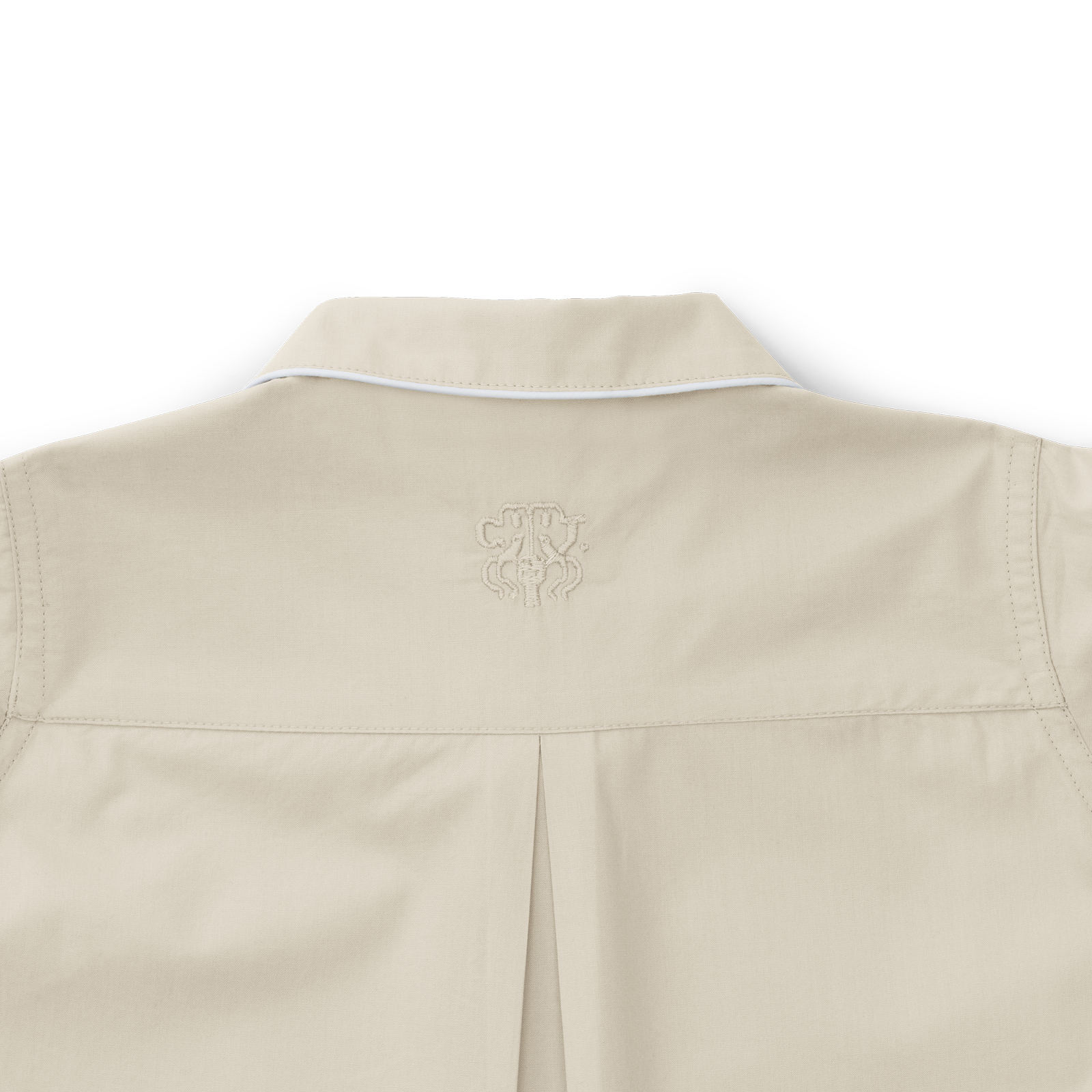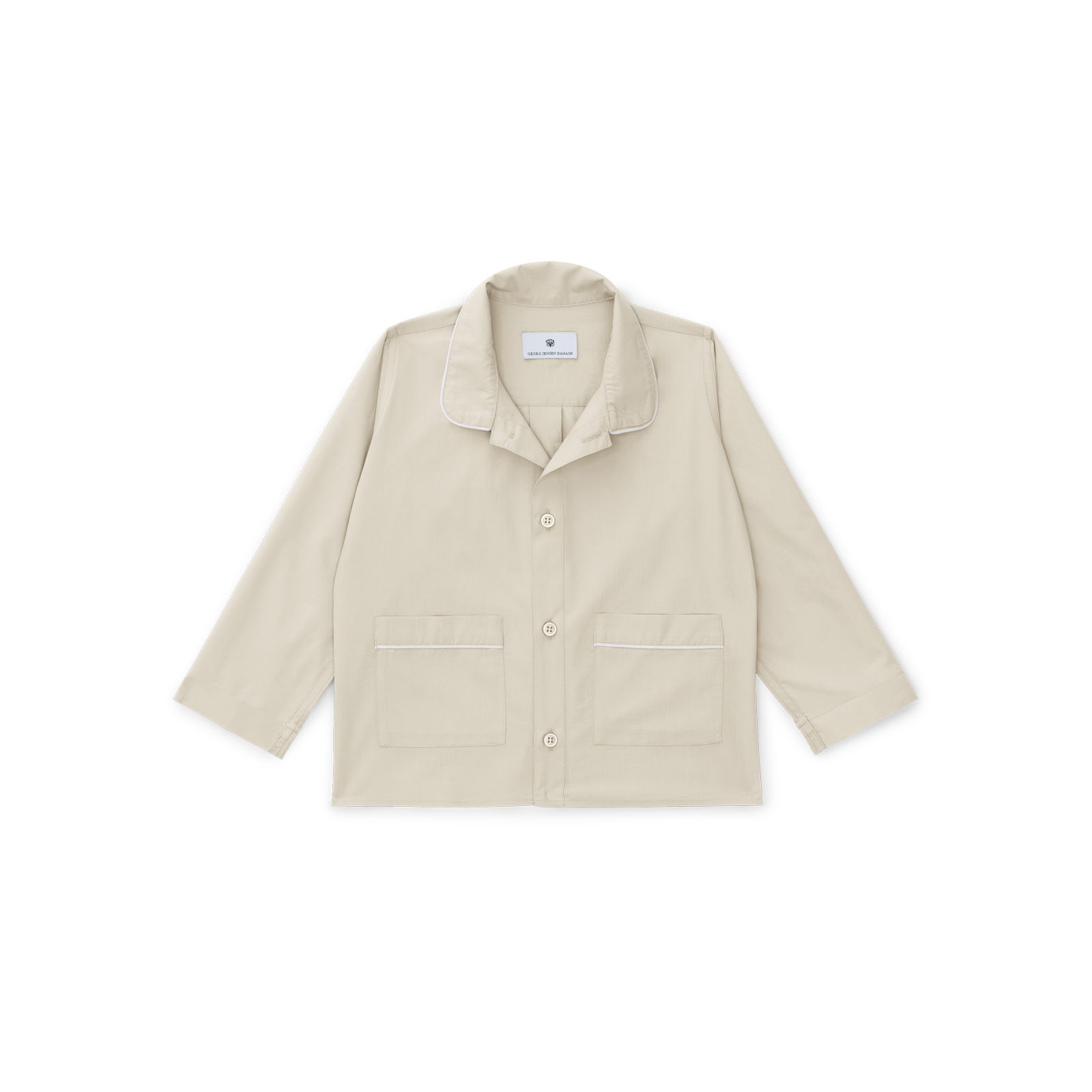 Unisex-Kinderpyjama aus perkalgewebter Supima-Baumwolle. Archive Linen ist ein heller Beigeton, inspiriert von Leinen aus unserem jahrhundertealten Archiv.