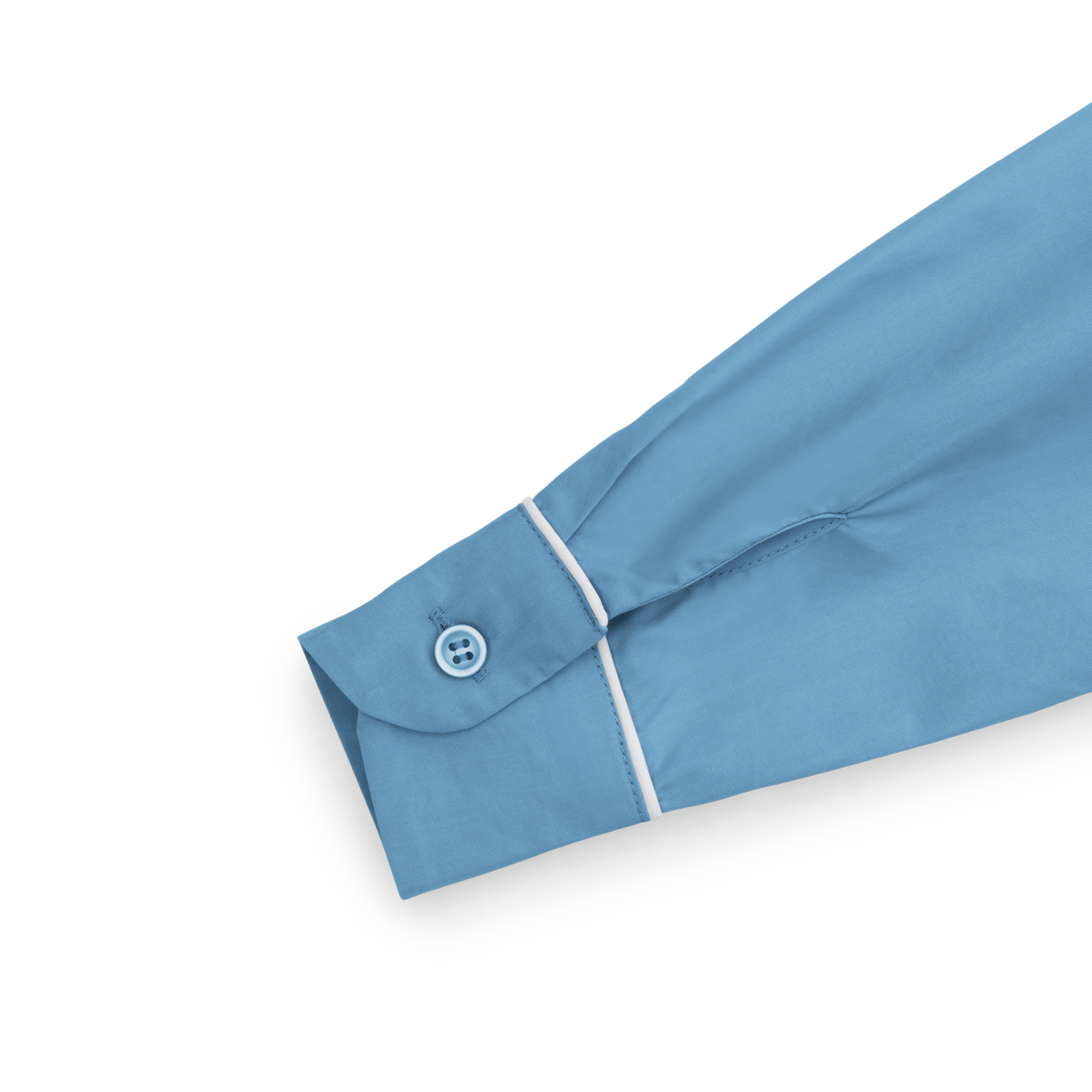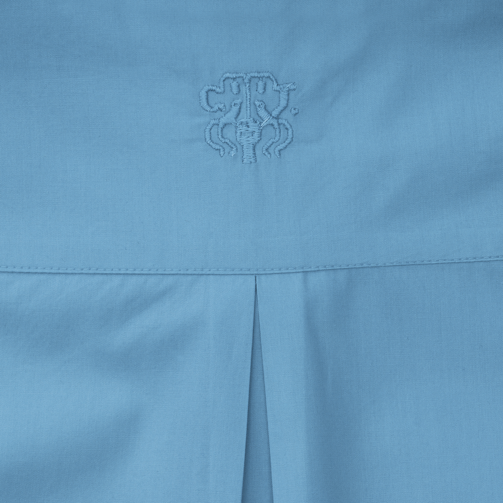 Hemdblusenkleid für Kinder aus perkalgewebter Supima-Baumwolle. Bright Blue ist ein gesättigter Blauton mit Anklängen an den klaren Sommerhimmel.