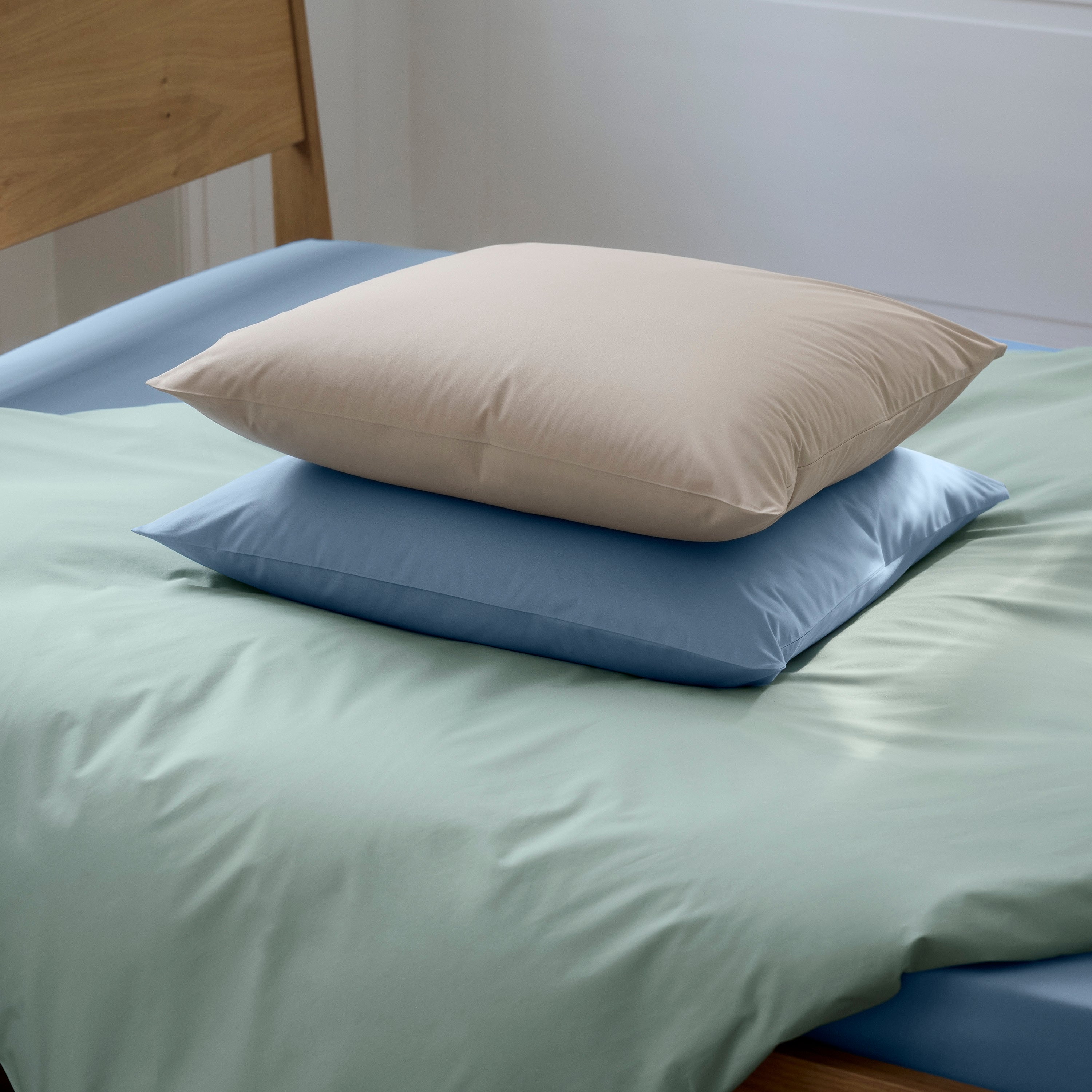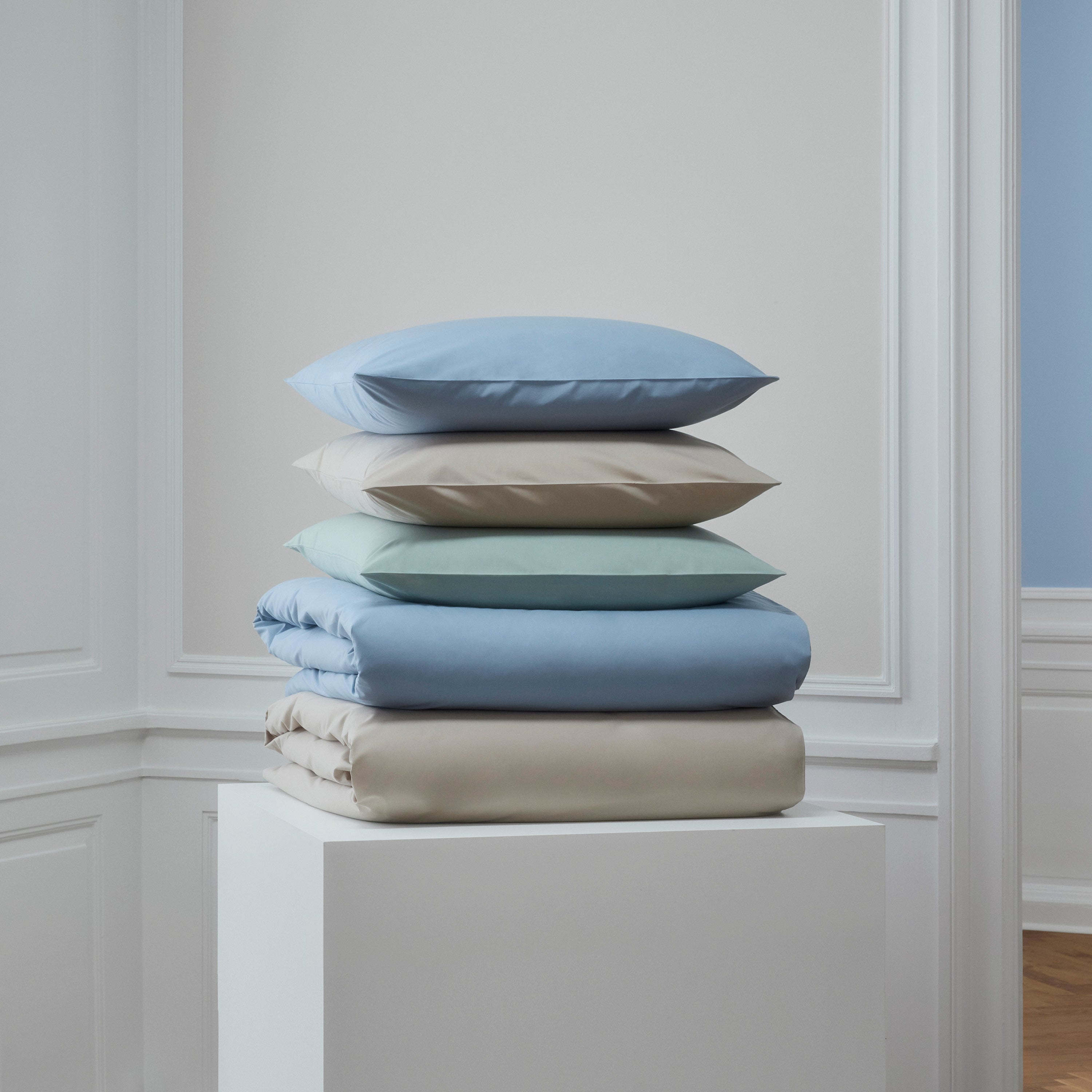 Das Supima Percale-Sortiment umfasst alles von Kopfteilen und Kissen bis hin zu Bettbezug und Laken in Farben wie Hellgrau, Hellgrün, kühlen Blautönen und warmen Erdtönen. Die langen Baumwollfasern verleihen den Bettwaren einen besonders schönen und sehr gleichmäßigen Farbton.