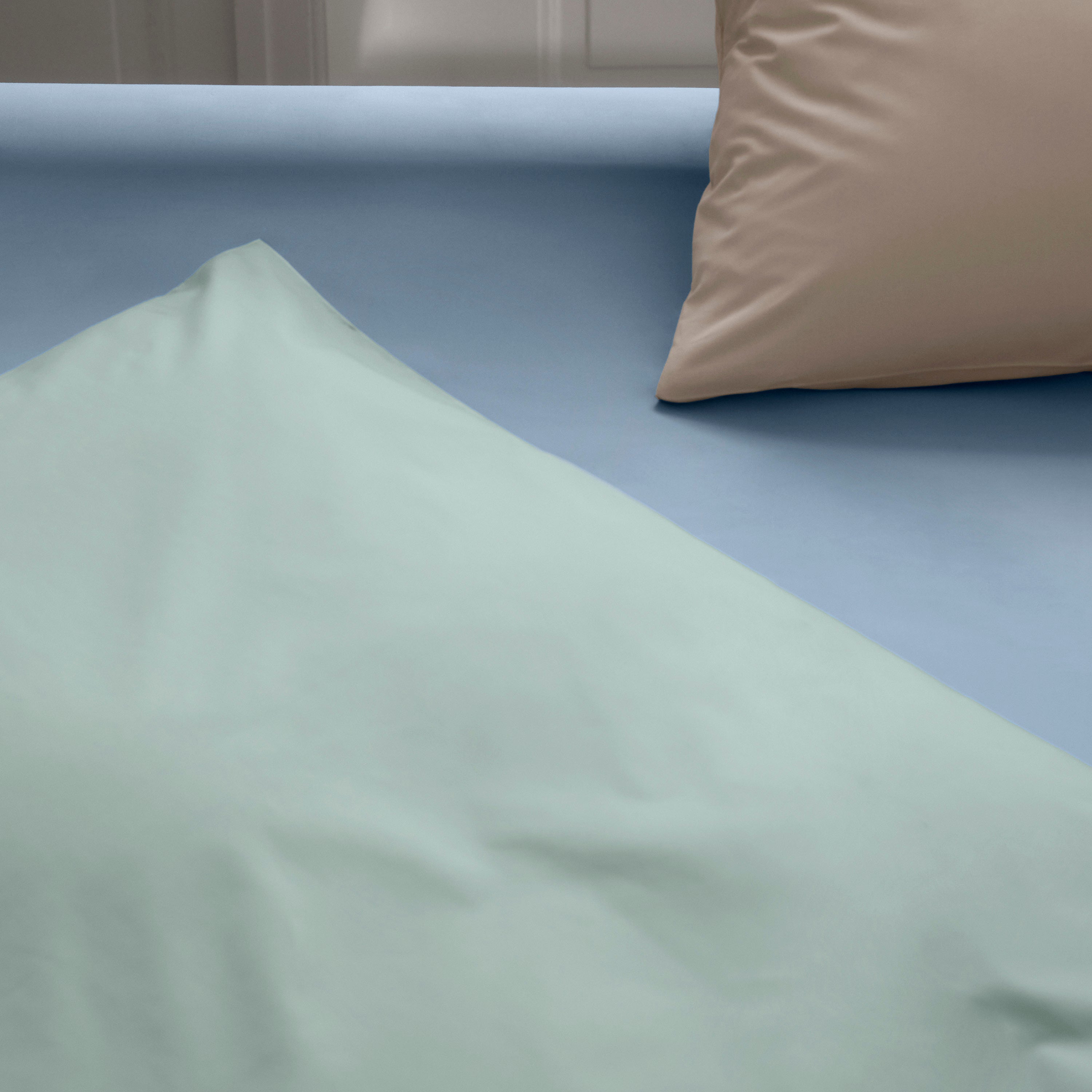 Das Supima Percale-Sortiment umfasst alles von Kopfteilen und Kissen bis hin zu Bettbezug und Laken in Farben wie Hellgrau, Hellgrün, kühlen Blautönen und warmen Erdtönen. Die langen Baumwollfasern verleihen den Bettwaren einen besonders schönen und sehr gleichmäßigen Farbton.