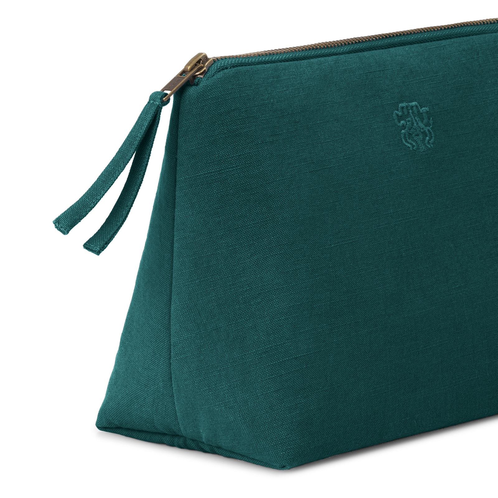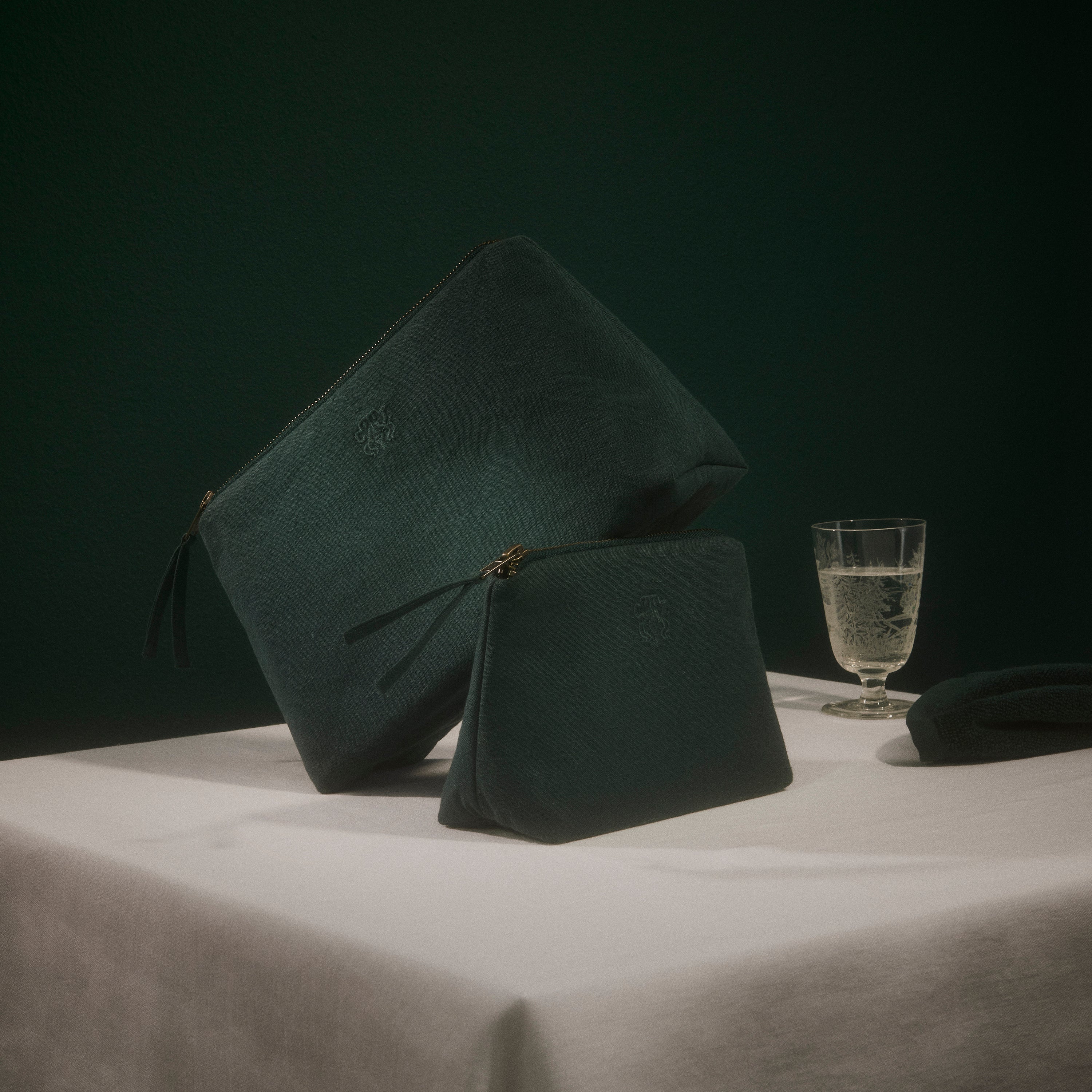 Funktionale und geräumige Kulturbeutel in zeitlosem Design. Die All-Kulturbeutel ist aus 100 % Baumwolle gewebt, hat eine Innentasche und trägt das eingestickte Georg Jensen Damask-Logo als elegantes Detail. Die Farbe Evergreen ist ein tiefes, kühles Grün – klassisch und anspruchsvoll.