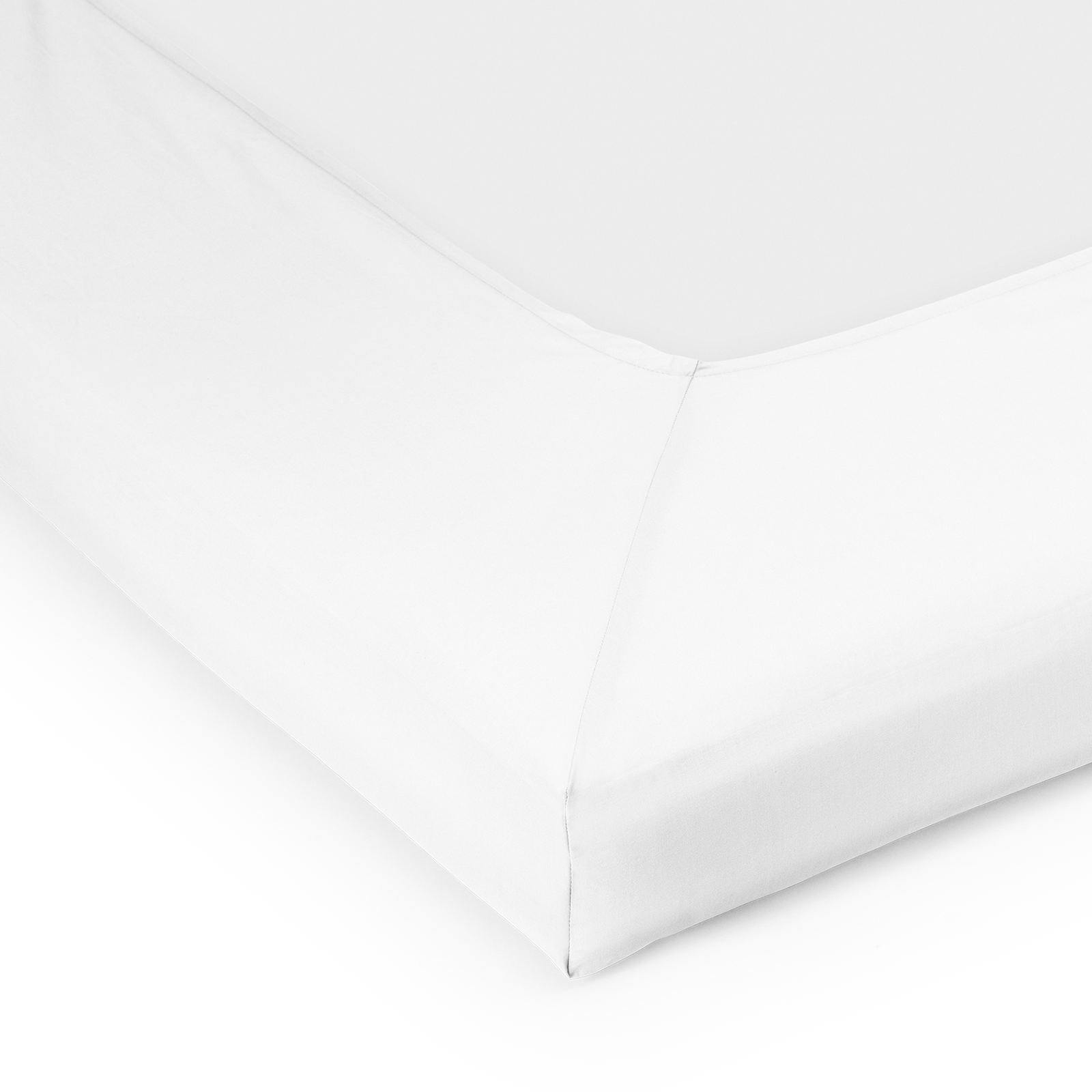 Das flexible U-förmige Bettlaken passt optimal auf ein verstellbares Doppelbett mit einem 8 cm hohen Matratzentopper, bei dem das Kopfende individuell verstellbar ist. Auf dem Laken ist dezent das ikonische Logo von Georg Jensen Damask aufgestickt. Bei der Farbe White handelt es sich um ein reines Weiß.