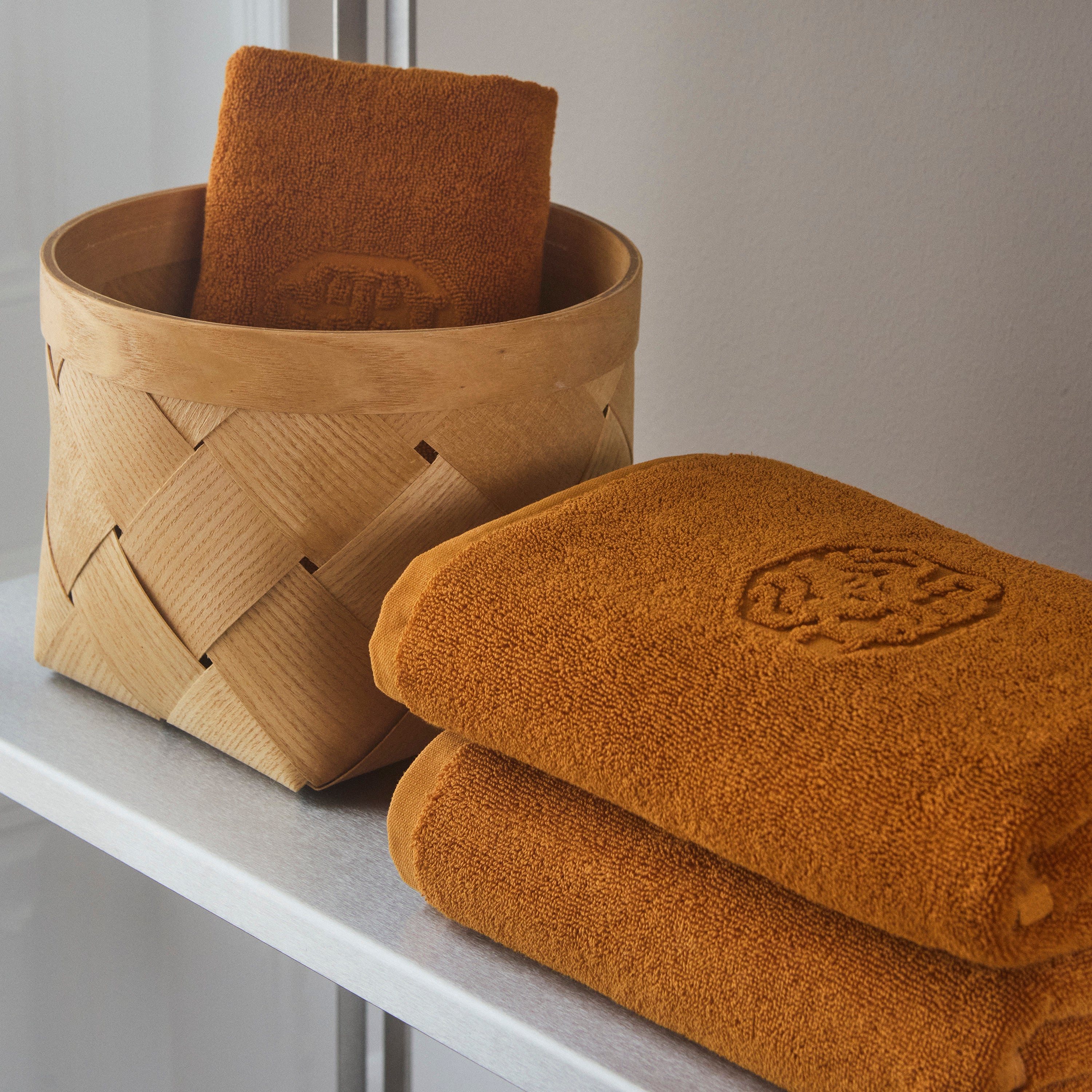 Das Damask Terry Waschlappen zeichnet sich durch ein schlichtes Design aus, mit dem ikonischen Logo von Georg Jensen Damask als elegantes eingewebtes Detail. Chanterelle ist ein tiefes Orange mit Karamellnuancen. Die Farbe ist von den schönen Farbtönen des Pfifferlings inspiriert.