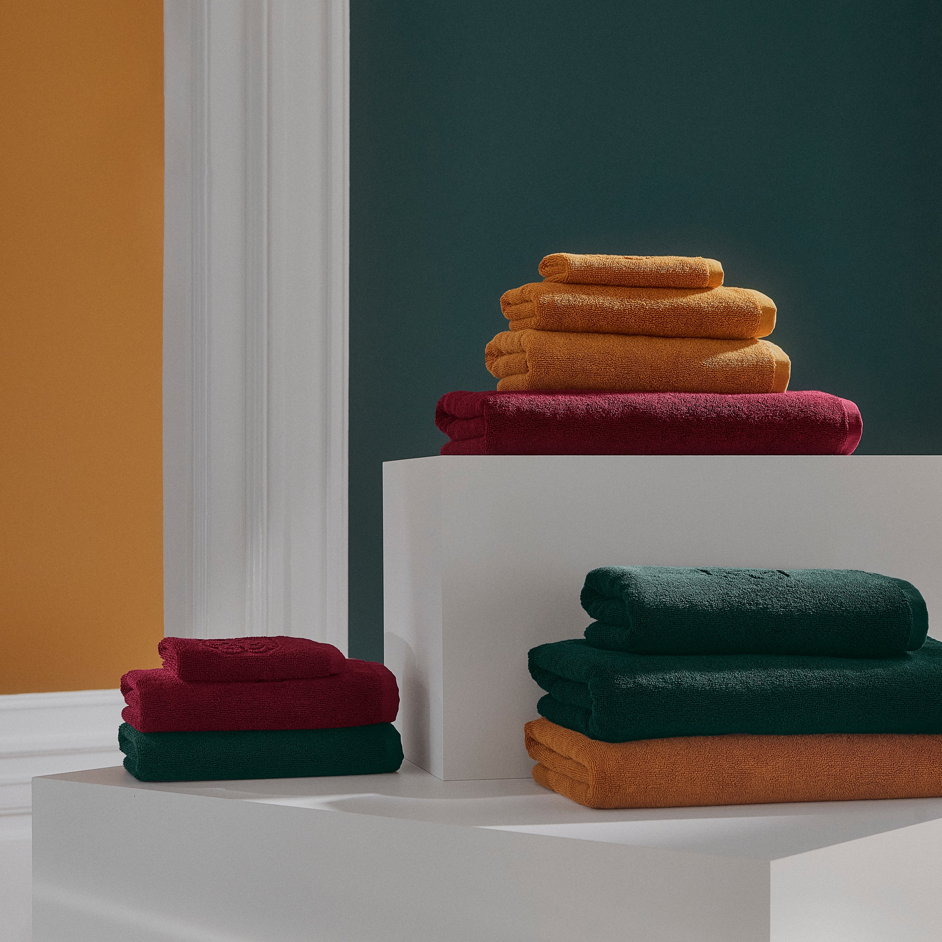Damask Terry ist auch als Badehandtuch, Handtuch, Gästehandtuch und Badematte erhältlich.