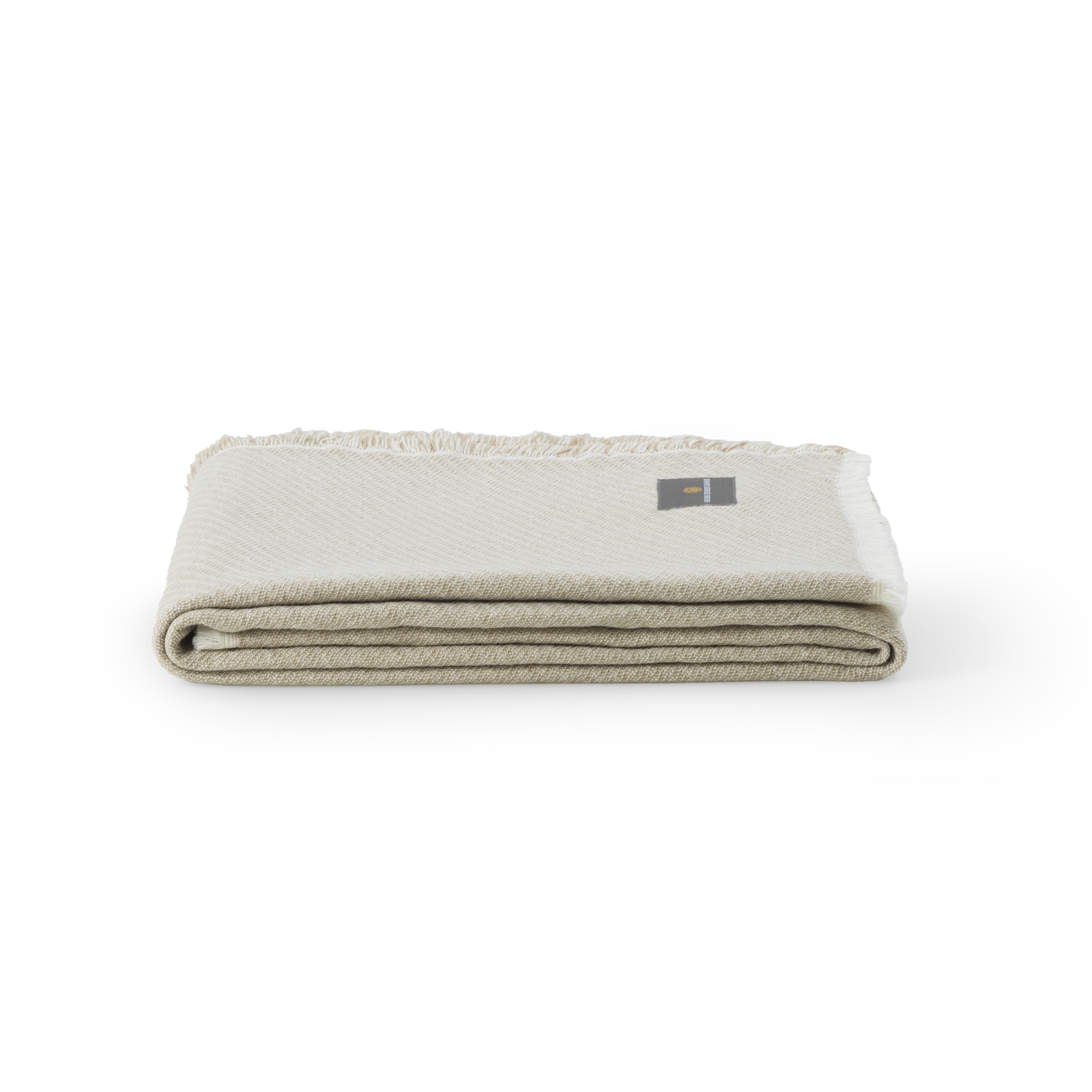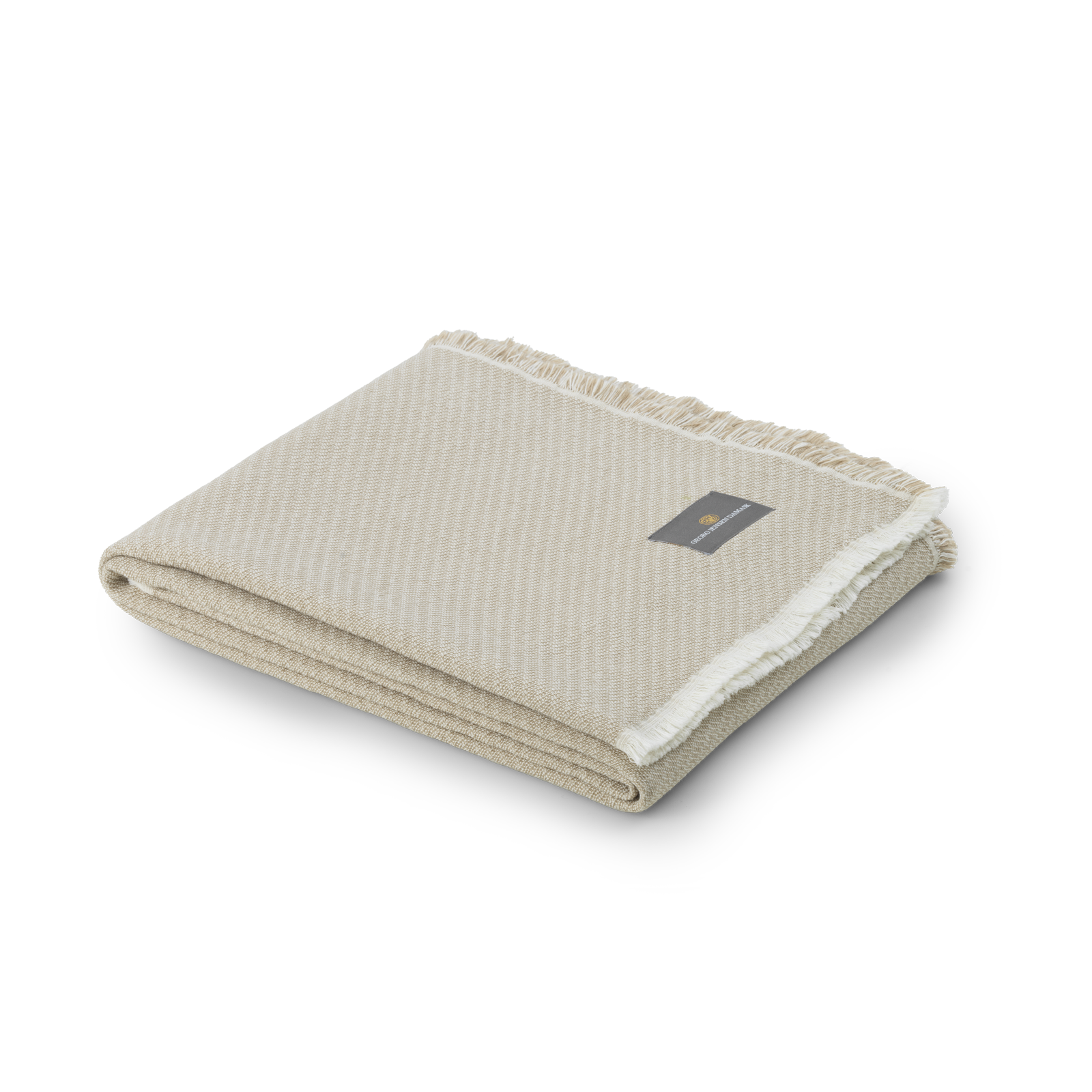 Eleganter Plaid aus 100 % weicher Baumwolle. Die Webart verleiht Weaver ein dezentes Strukturmuster, das von kurzen Fransen an den Rändern eingerahmt wird. Bei der Farbe Sand handelt es sich um einen hellen Beigeton.